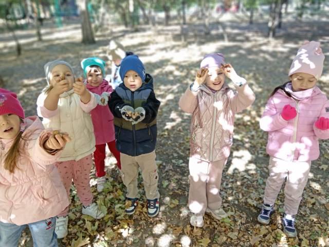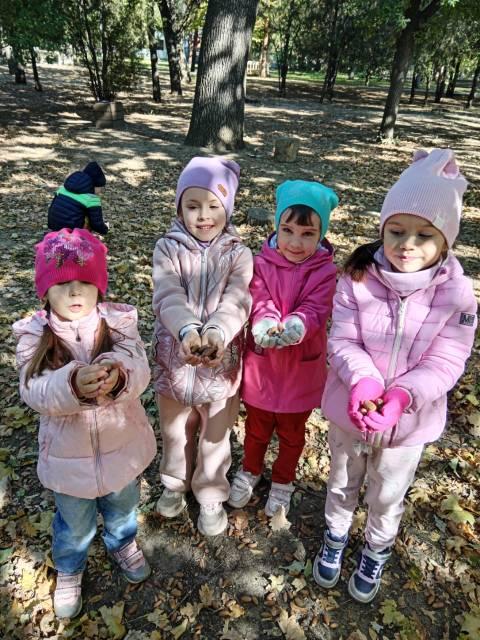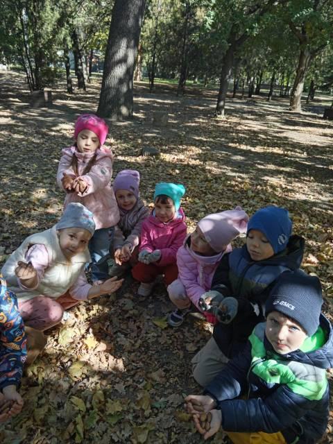 Во время занятия дети любовались красотой родной природы, рассматривали деревья, кусты, растения, которые представляют флору парка. Отметили, какие изменения произошли в убранстве деревьев и кустов. Рассмотрели плоды и семена растений. Отгадывали загадки, вспомнили песни об осени. Учились сравнивать, обобщать и делать выводы. Дети с радостью собирали осенние листочки для поделок, играли в забавные и подвижные игры на детской площадке.